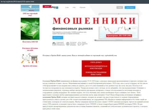 Далее представлен скриншот главной страницы интернет-сайта мошеннического бинарно-опционного брокера Опцион Холд, с помощью которого они привлекают потенциальных жертв.