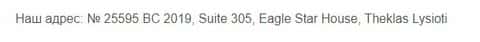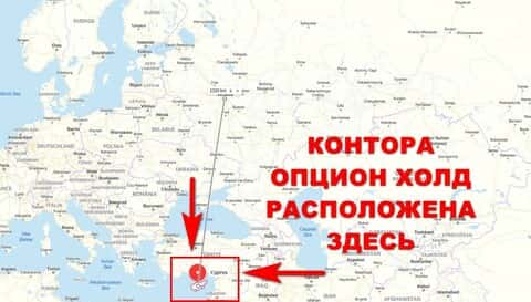 Далее представлена информация о местоположении бинарной конторы Опцион Холд. Эти мошенники разместились на территории острова Кипр, что является оффшорной зоной.