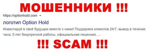 Такая же ситуация и с брендом "OptionHold" - поисковая система Гугл не обнаружила никакой активности, поэтому данный лохотрон не популярен.