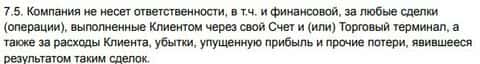 Лохотрон Опцион Холд также указывает, что они не несут никакой ответственности за деньги клиента. И даже если их сервис спровоцирует потерю средств, компенсации не будет.
