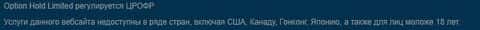 Что касается регуляции деятельности конторы Опцион Холд, то они пишут, что регулируются ЦРОФР. правда нет ни единого документа, чтобы это можно было подтвердить.