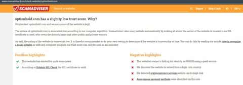 Судя по информации с сайта scamadviser com, контора Опцион Холд находится под сомнением, так как особо они не заморачивались в создании и поддержке своего ресурса.