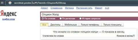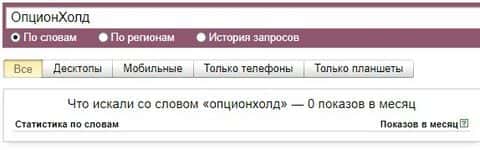 Что касается другой версии бренда "Опцион Холд", то здесь нет запросов за последний месяц и нужно понимать, что некоторые люди даже не знают о них