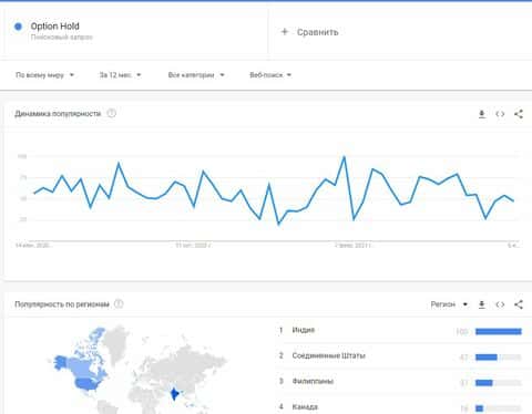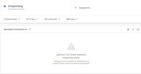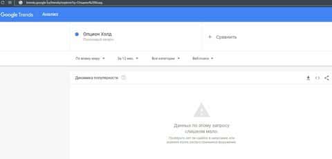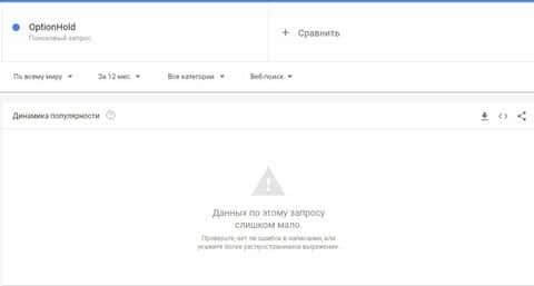 Что касается бренда "ОпционХолд" в такой вариации, то здесь также нечего сказать, так как они не набрали по Гугл Трендс никаких значений.