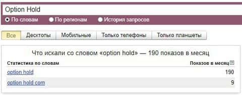 Запросы в Яндекс по бренду "Option Hold" набрали порядка 190 показам за последний месяц, поэтому можно считать их немного популярными.