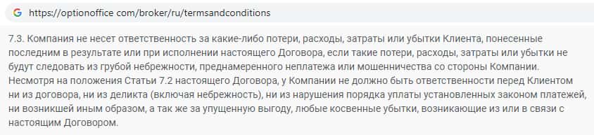 Отказ от ответственности на официальном сайте организации OptionOffice