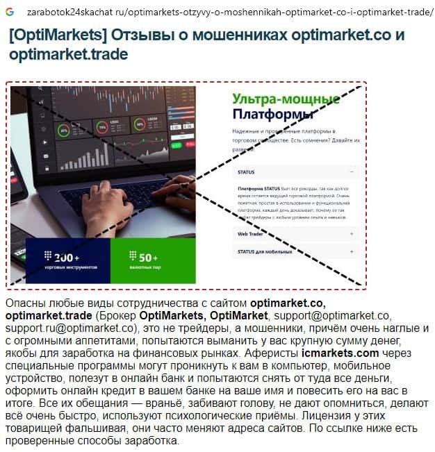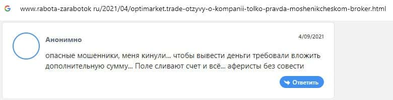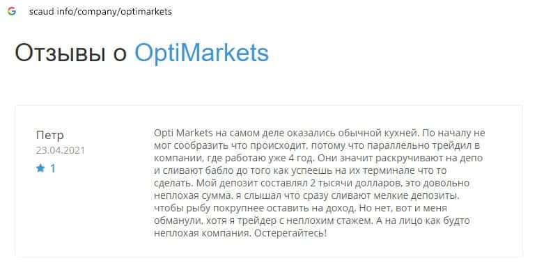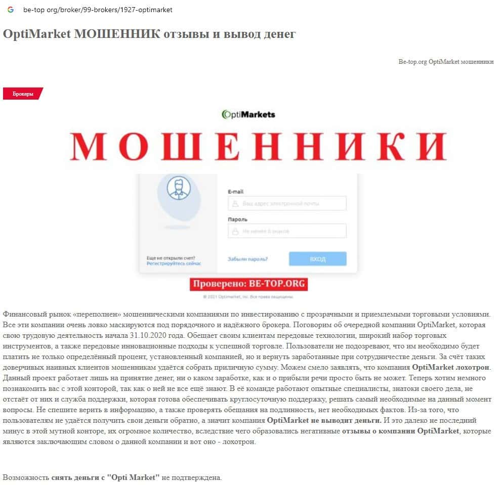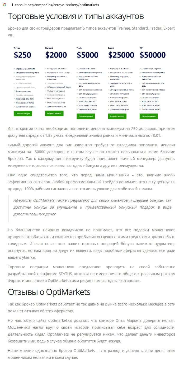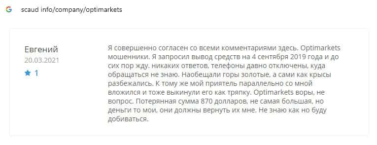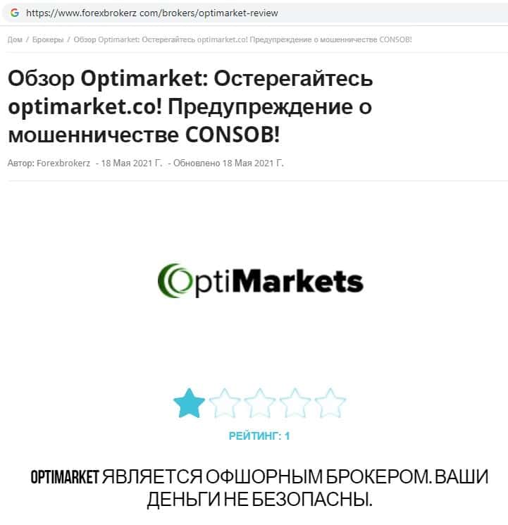 - Отзывы о скам-брокере OptiMarkets, ныне присутствующие в сети