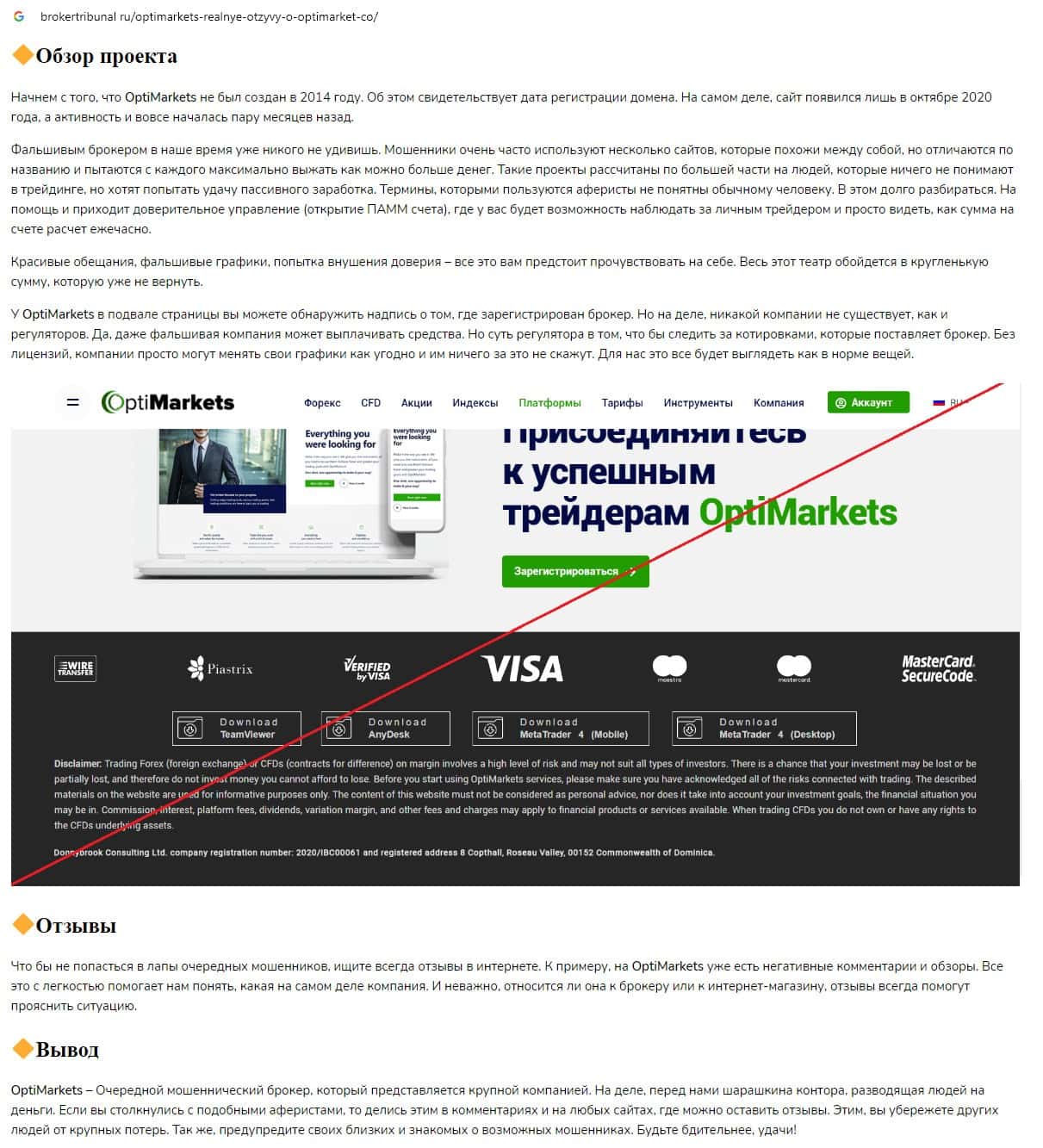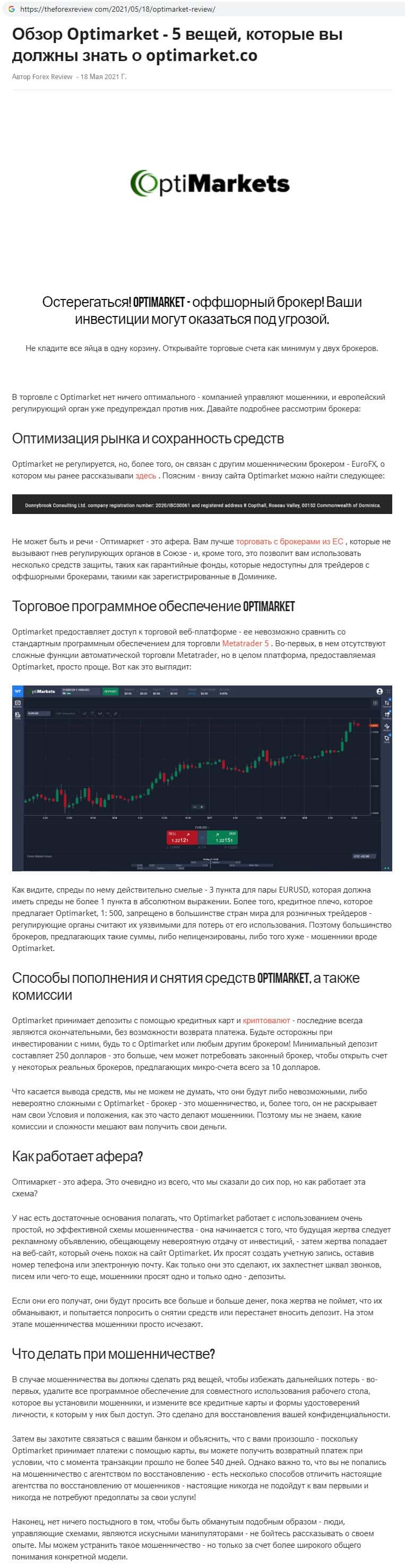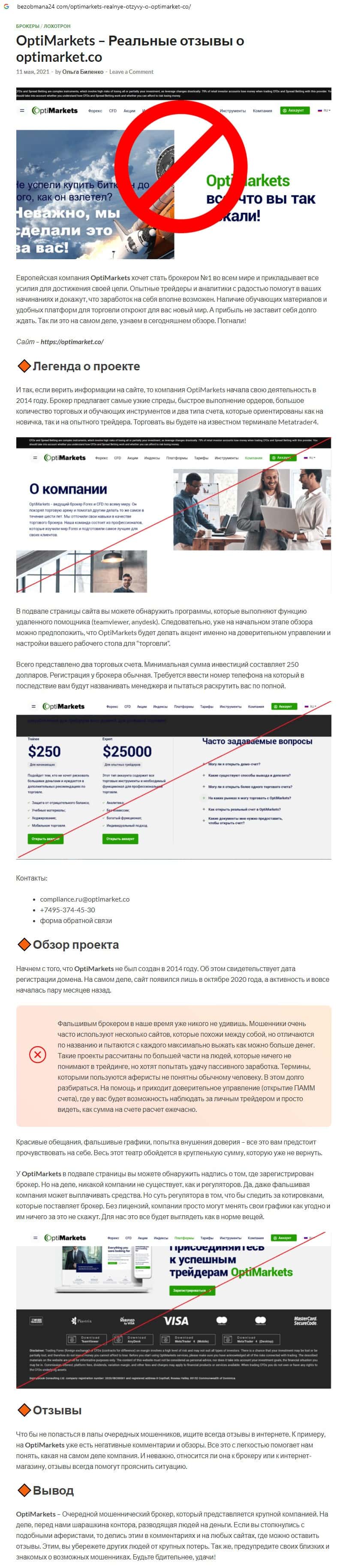 - Отзывы о скам-брокере OptiMarkets, ныне присутствующие в сети