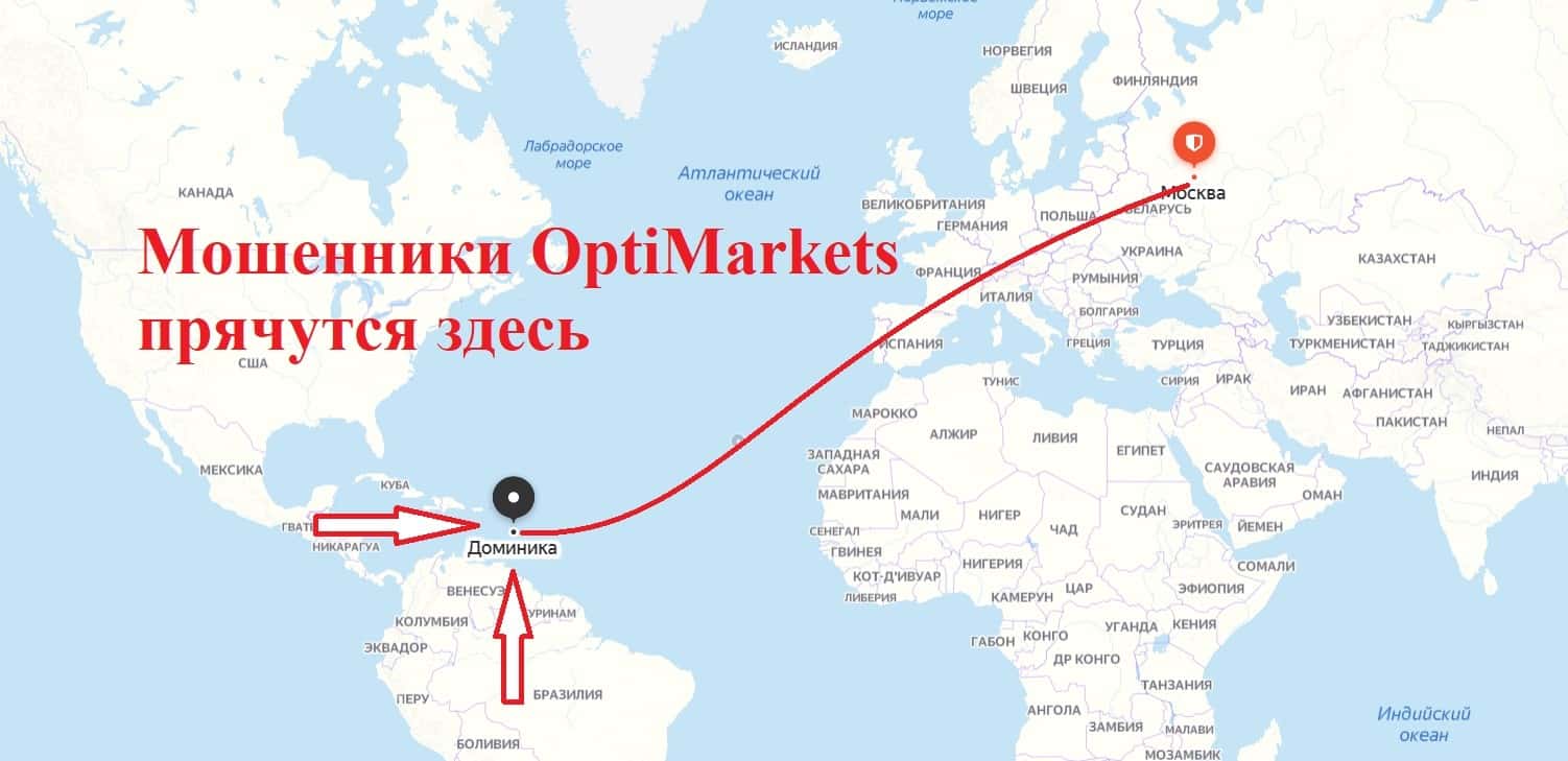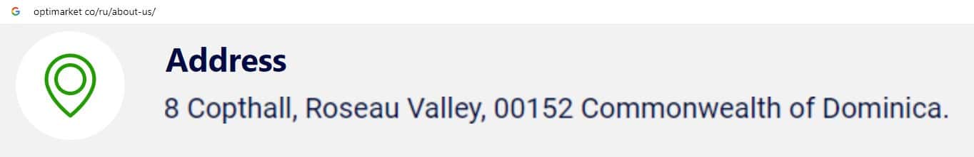 На сайте псевдо-брокерской организации OptiMarket указано, что юридическое лицо, которому принадлежит бренд, зарегистрировано в оффшорном государстве Доминика.