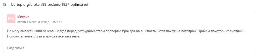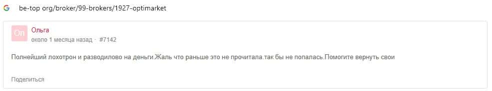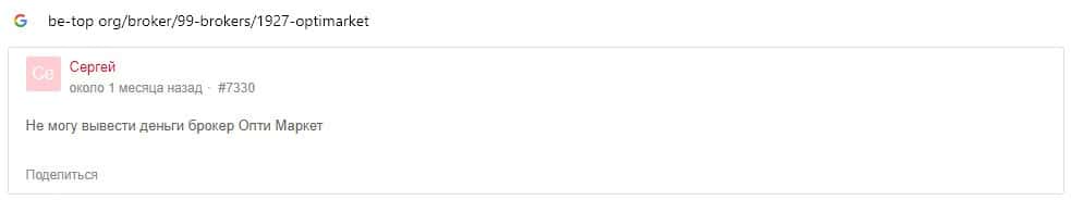 - Опти Маркет - обзоры скам-организации на других интернет-порталах