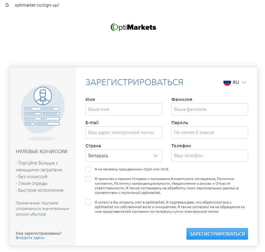 - Отсутствие клиентского соглашения на сайте скам-брокера Опти Маркетс