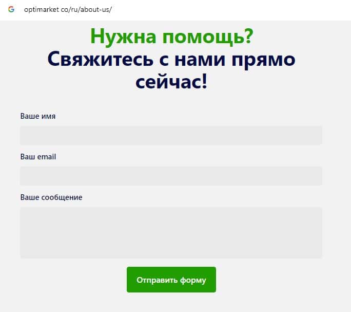 Мошенники OptiMarket ведут сбор данных о посетителях своего дырявого сайта, просят указать свой адрес электронной почты в качестве обратной связи.