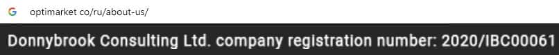 Юридическое лицо Donnybrook Consulting Ltd владеет мошенническим интернет-сервисом optimarket co, компании OptiMarkets, у которой оффшорная регуляция.