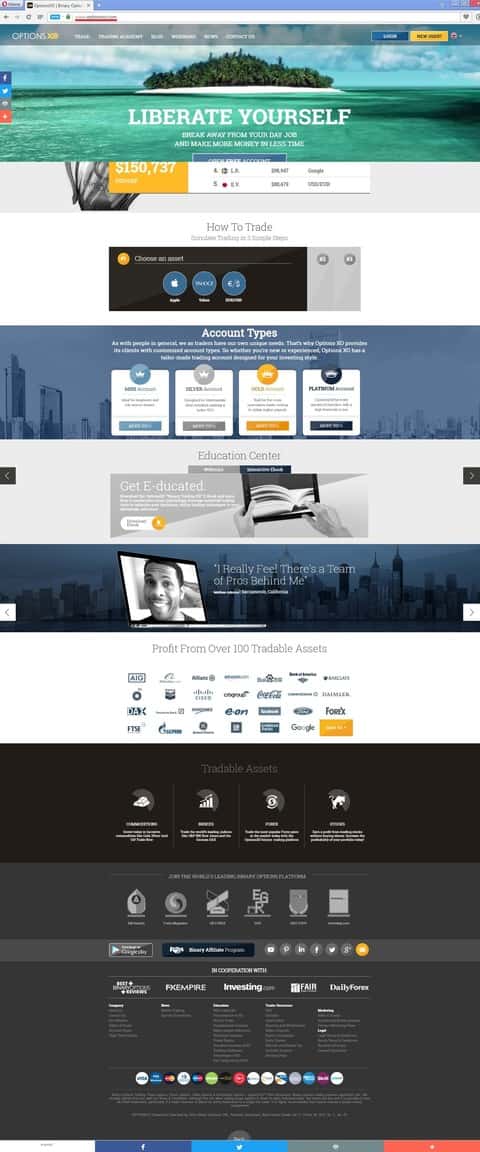 Что до непосредственно ресурса optionsxo com, ну это обычный корпоративный лендинг, смысл которого заманить будущего биржевого игрока, а точнее, заполучить контактные сведения очередного лоха. Цена официального интернет-ресурса Optionsxo, по нашим оценкам, предположительно от 150 до 300 тысяч рублей, может немножко подороже, но порядок цен такой.