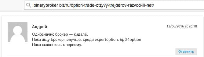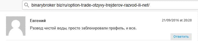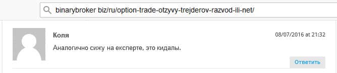 Очередной пользователь говорит, что OptionTrade - это обыкновенные кидалы