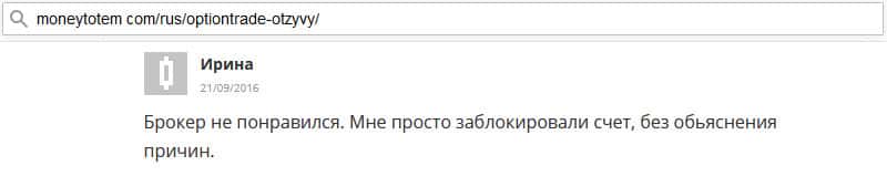 Оптион траде блокировали клиенту счет без всяких объяснений причин