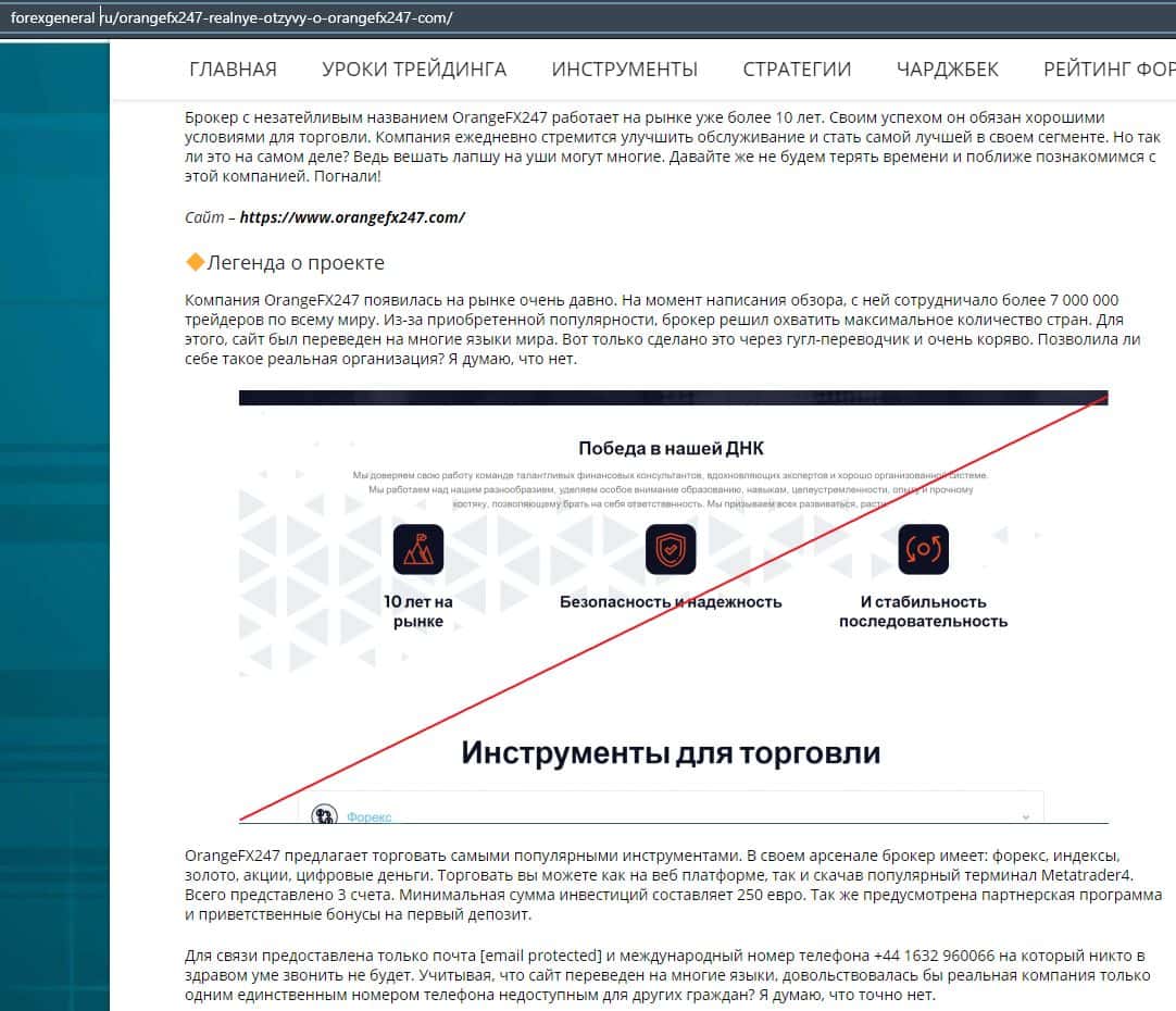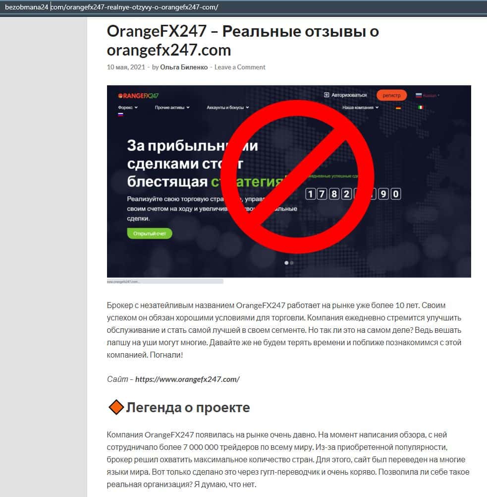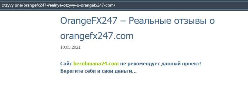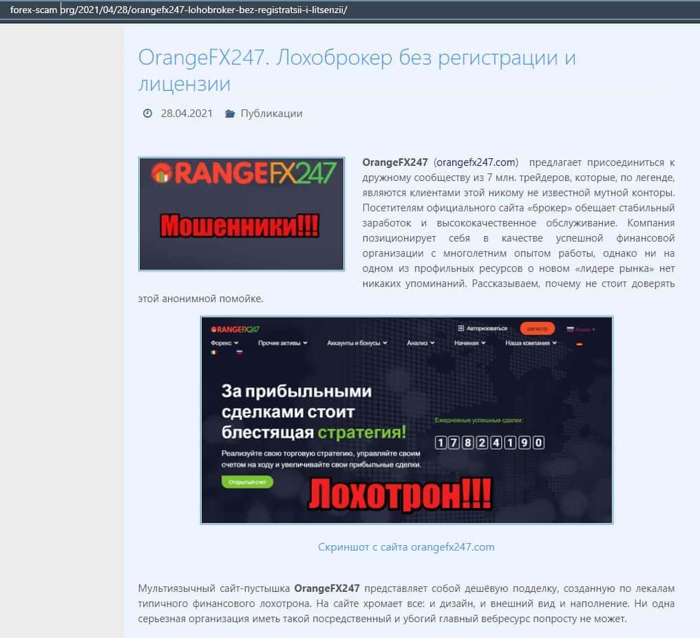 Далее представлена еще одна статья касательно мошеннической конторы Орандж ФХ 247. Там расписывается разоблачение их деятельности и советуют людям не вестись на развод.