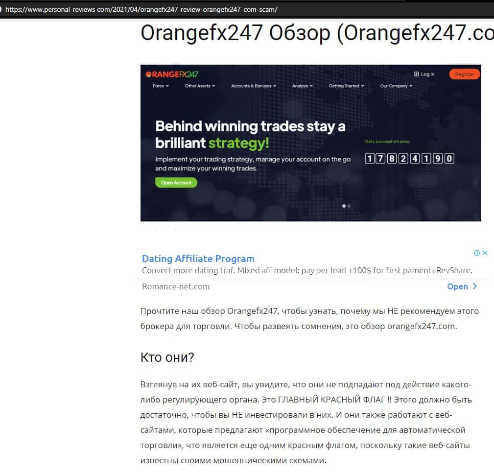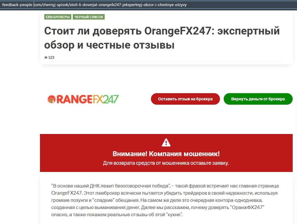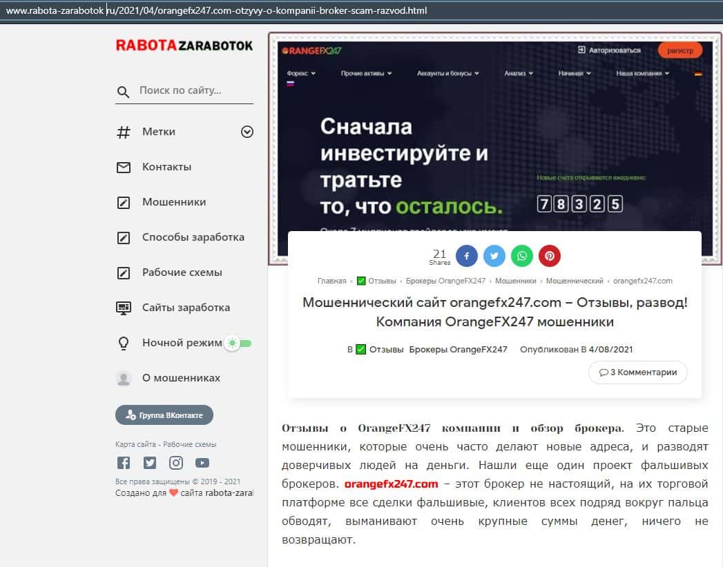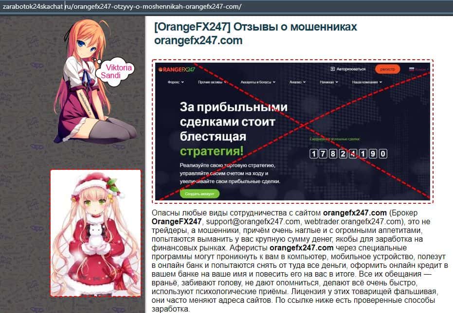 Далее представлена еще одна статья касательно мошеннической конторы Орандж ФХ 247. Там расписывается разоблачение их деятельности и советуют людям не вестись на развод.