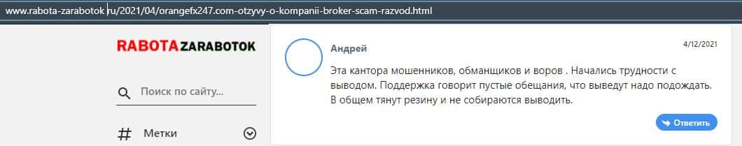 Отзывы клиентов про лохотрон OrangeFX247