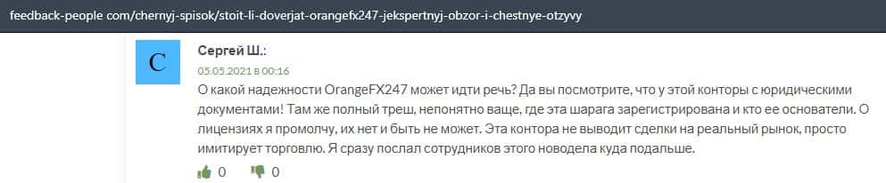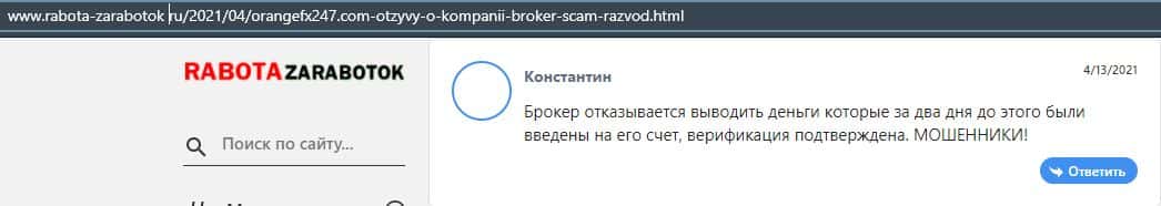 - Люди не рекомендуют связываться с аферой OrangeFX247