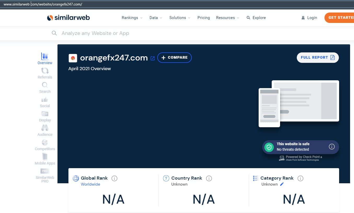 Что касается трафика интернет-портала форекс-аферистов Орандж ФХ 247, то здесь лохотрон ничем не отличился, так как сервис similarweb com не мог определить эти данные.