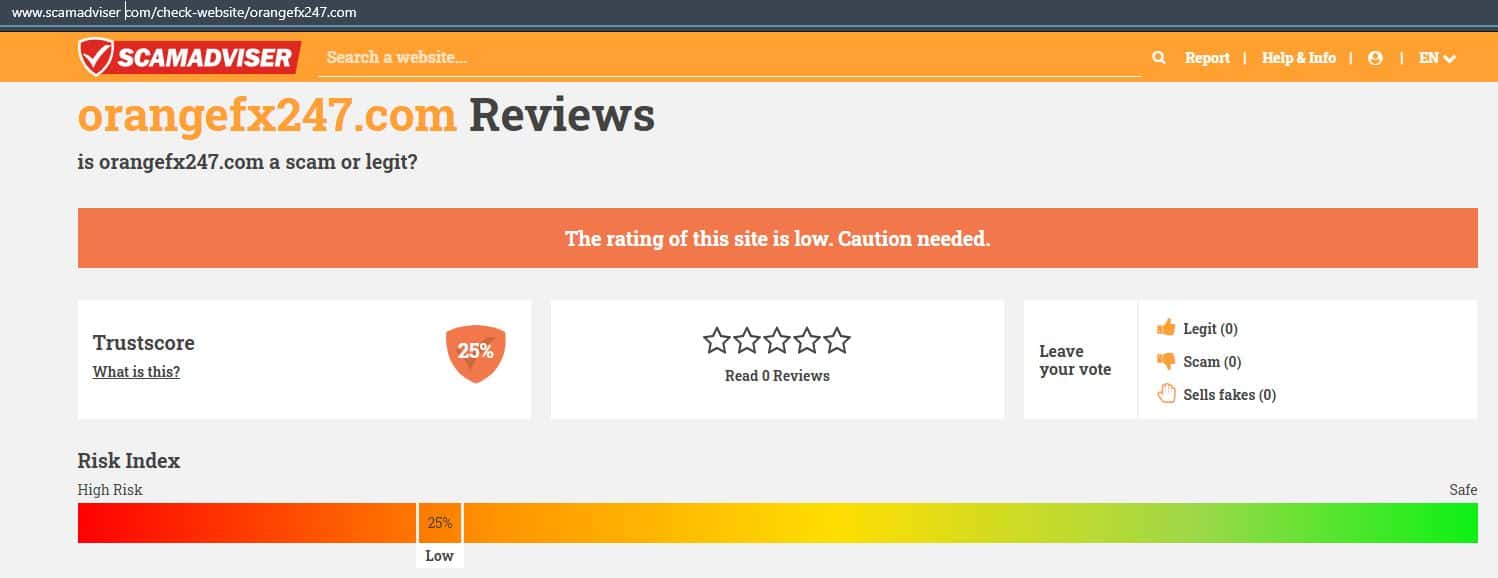 По поводу сайта лохотрона Орандж ФХ 247, портал сервиса scamadviser com высказал свое мнение не в его пользу. Рейтинг у сайта очень низкий, поэтому очень опасно заходить на него.