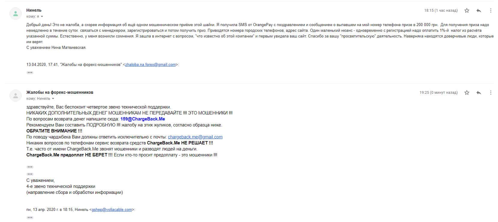 Как уже было сказано, шулера Оранж Пей работают вместе с другими мошенниками. Предлагая услуги по возврату, мошенники Orange Pay просто-напросто присваивают деньги клиента себе. В ответ банки один за другим начинают добавлять Оранж Пей в список мошеннических платёжных систем.