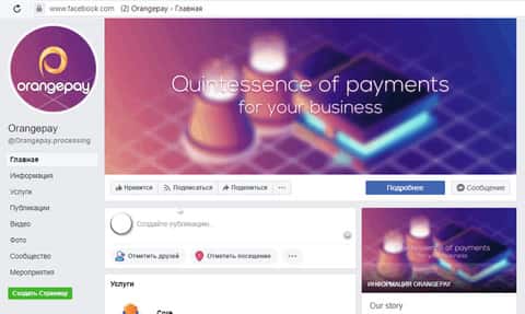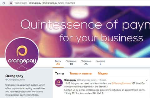 Имеется у жуликов Оранж Пей как страница в популярнейшей социальной сети Facebook, так и в не менее популярной под названием Twitter. Это в свою очередь как-никак поднимает лояльность пользователей к конторе, при этом мало кто понимает истинную мошенническую суть данной шарашки.