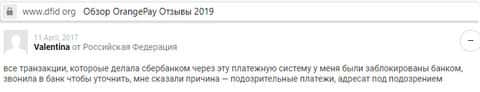 Данный пользователь, например, является клиентом Сбербанка. Он был предупреждён о том, что Orange Pay является подозрительной платёжной системой, которая чудик разнообразные спекуляции с клиентскими деньгами. Это же и показывает истинное лицо шарашки Оранж Пей.