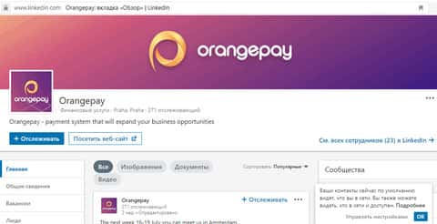 Не обошли вниманием шулера и рабочую социальную сеть LinkedIn. Она также используется для отвлечения внимание людей от того факта, что репутация мошеннической организации Orange Pay на деле на соплях держится.