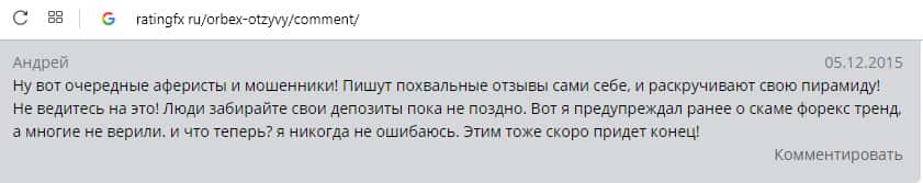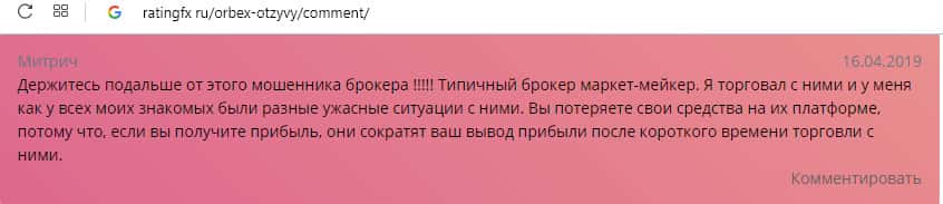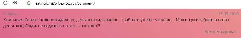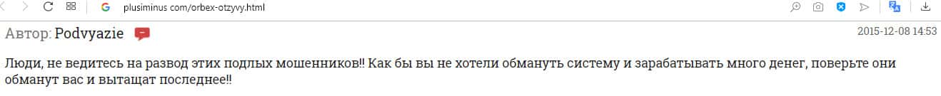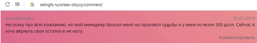 Отзыв о том, как жулики Орбекс украли у человека 1500 долларов