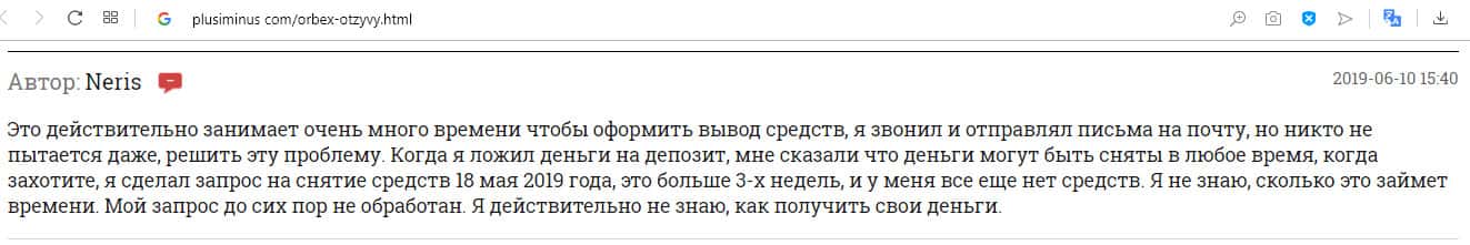 Жулики используют различные отмазки, которые касаются именно причин, почему они не могут вернуть деньги. Вот один клиент вообще решил уйти с этой богадельни, так как он переживает, что однажды лохотрон Орбекс закроется и вернуть вложенные средства уже не будет возможности.