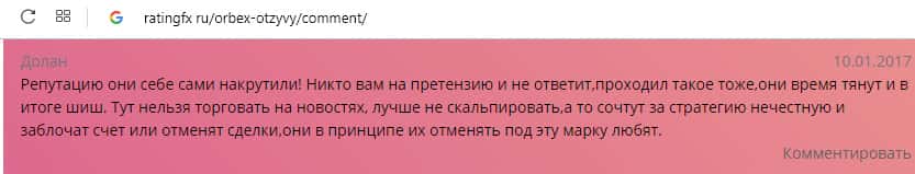 По мнению интернет-пользователей жулики Орбекс накрутили себе специально репутацию, через платные ресурсы. Потому что, если посмотреть на отзывы реальных клиентов, то сразу же становится видно, как лохотрон кинул уже не мало людей и это просто невозможно скрыть. При чем весь позитив сложен на основе шаблонных текстов.