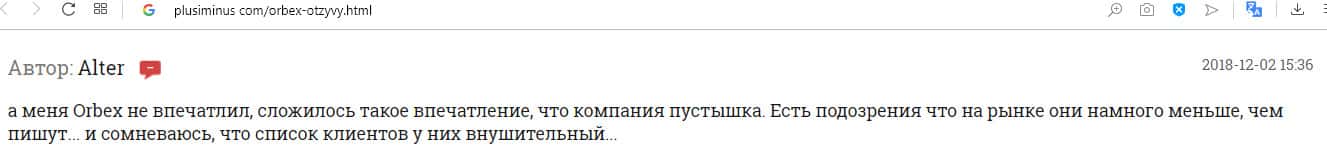 Еще один человек рассказал вкратце, как работает контора Орбекс и вообще, что она из себя представляет. По его мнению, данная кухня находится на рынке намного меньше, чем они указывают. Обычный пиар вбивает в умы интернет-пользователей, что это якобы надежная компания с многолетней историей, но все это обычный фейк.