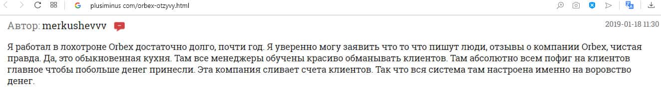 - Отзыв от сотрудника мошеннической организации Орбекс