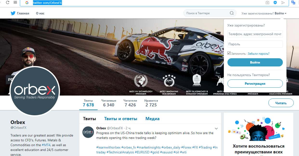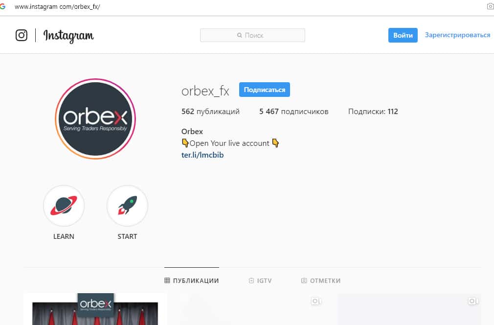 - аккаунт в Инстаграм instagram com/orbex_fx