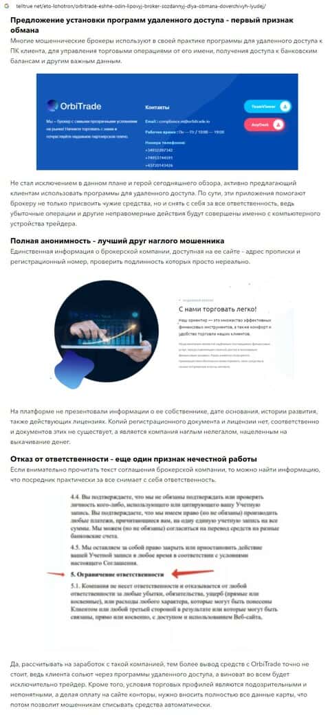 Псевдо-брокер Orbi Trade на своем официальном сайте размещает ссылки, за содержание которых скам-организация ответственности не несет.
