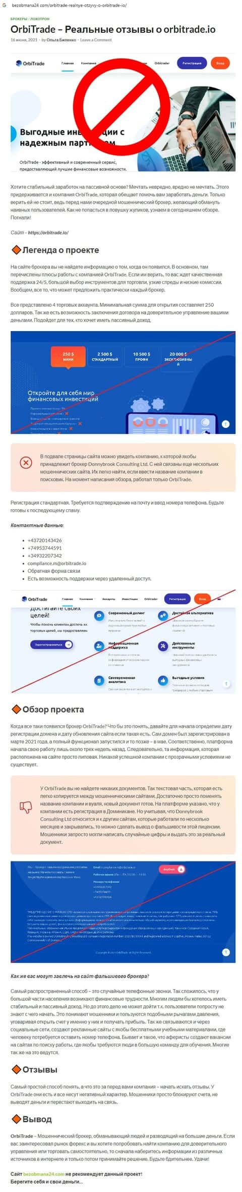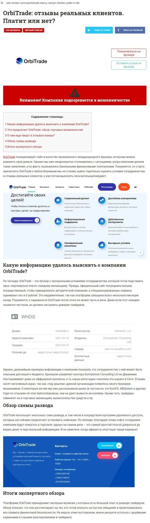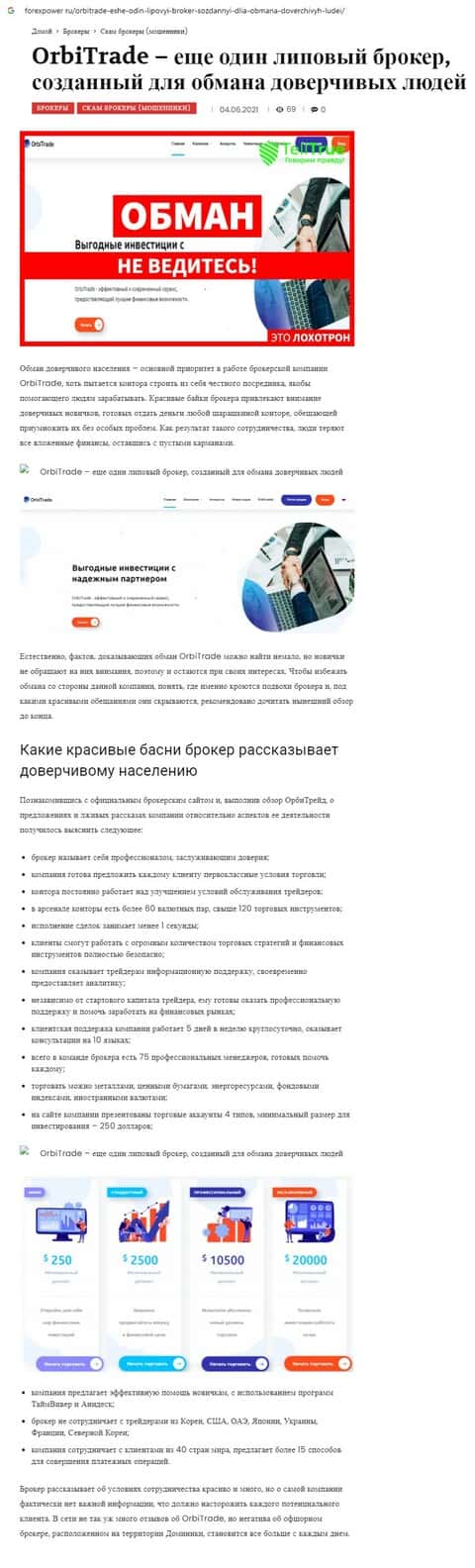 Далее предоставлен информационный материал разоблачающий деятельность жульнической организации Orbi Trade, которая предоставляет псевдо-брокерские услуги.