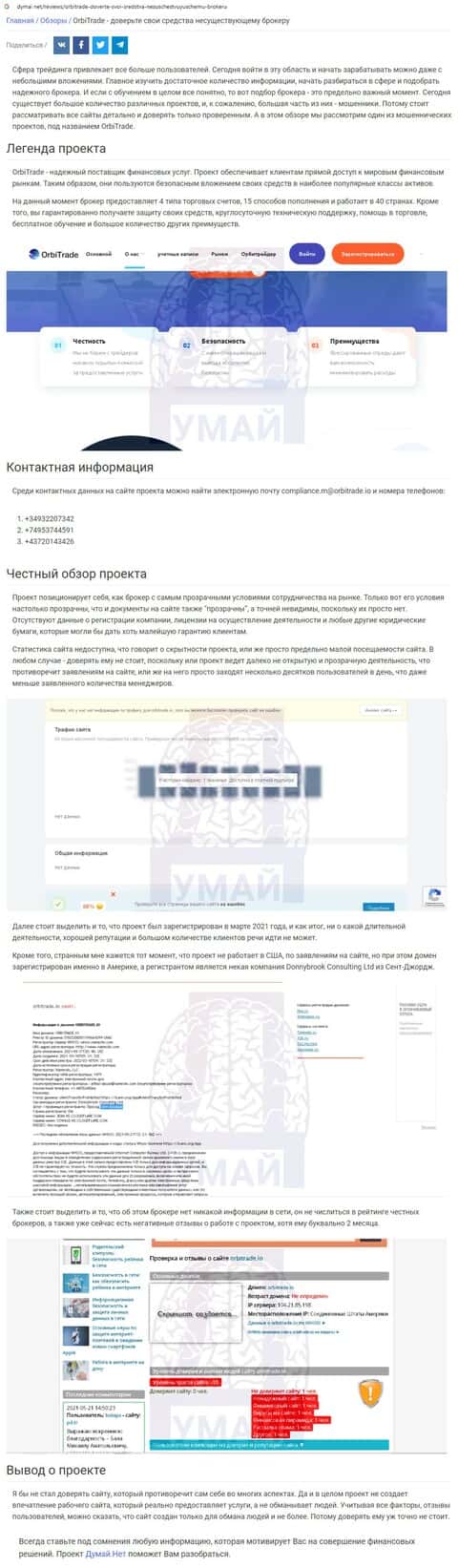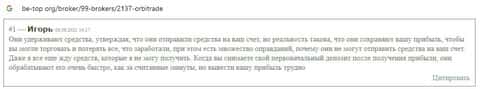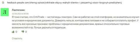 - Псевдо-брокерской организации OrbiTrade пользователи не доверяют
