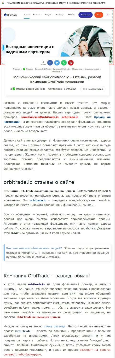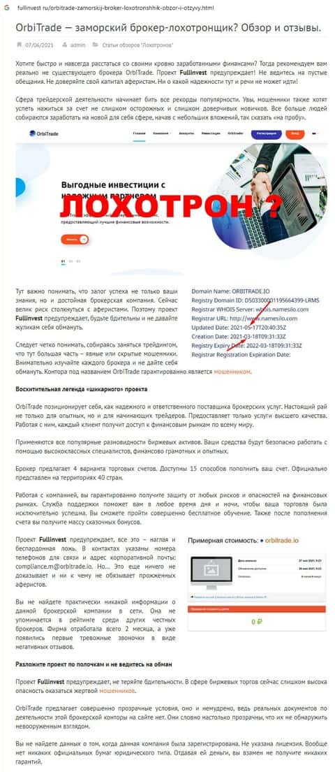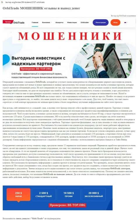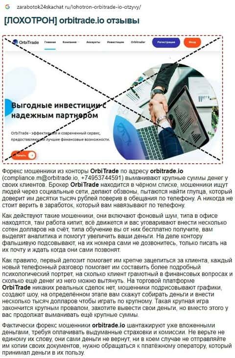 Орби Трейд - обзоры мошенников на других интернет-порталах