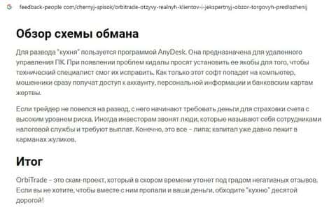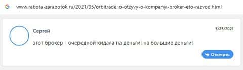 - Отзывы об аферистах OrbiTrade, ныне присутствующие во всемирной паутине