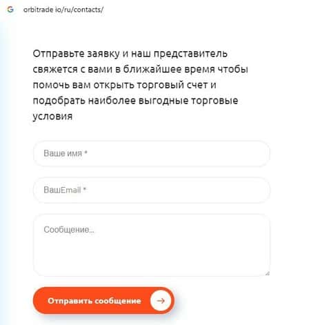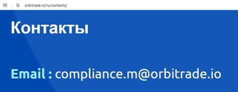 Жулики Орби Трейд на своем официальном интернет-сервисе указывают адрес электронной почты, а именно: