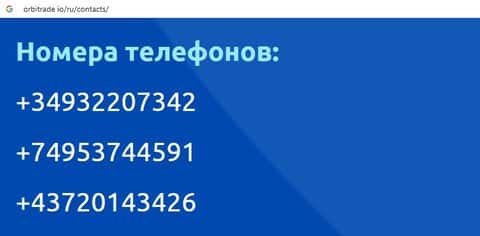 Лохотронщики Orbi Trade на своем дырявом сайте указали несколько номеров контактного телефона, с которых навязчиво названивают потенциальным жертвам: