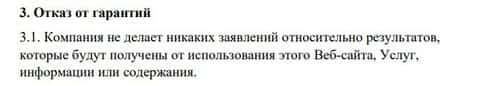 Аферисты Орби Трейд не дают никаких гарантий клиентам, в том числе и того, что предоставленная ими информация является точной и достоверной.