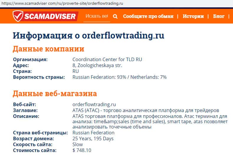 В связи с мошеннической и противозаконной деятельностью лохотрона Order Flow Trading его реальные руководители предпочитают анонимность дабы избежать ответственности со стороны правоохранительных органов. Техническую же информацию о сайте аферистов Ордер Флоу Трейдинг можно узнать с помощью портала scamadviser com.