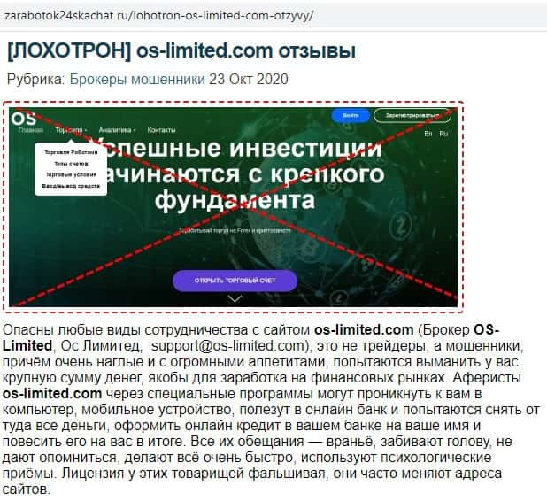 - Мнение о мошенниках ОС Лимитед на разных сайтах