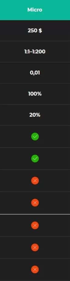 Первый тип счета, который предлагают открыть жулики ОС Лимитед - "Micro" с минимальным депозитом в 250$.