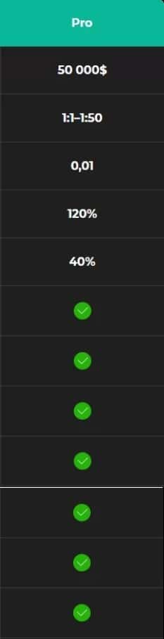 Четвертый и последний тип счета мошенников ОС Лимитед - это "Pro" с минимальным депозитом в 50 000$.