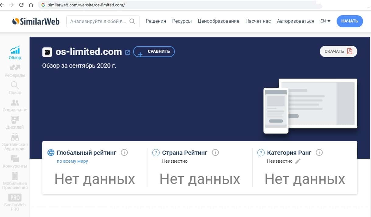 Источники трафика по сайту os-limited com также не показываются. Он у них настолько убогий. Впрочем, неудивительно.