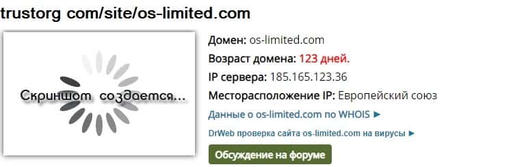 Чтобы там мошенники os-limited com не пели о "годах" своей работы, а реальный возраст существования их домена - 123 дня.